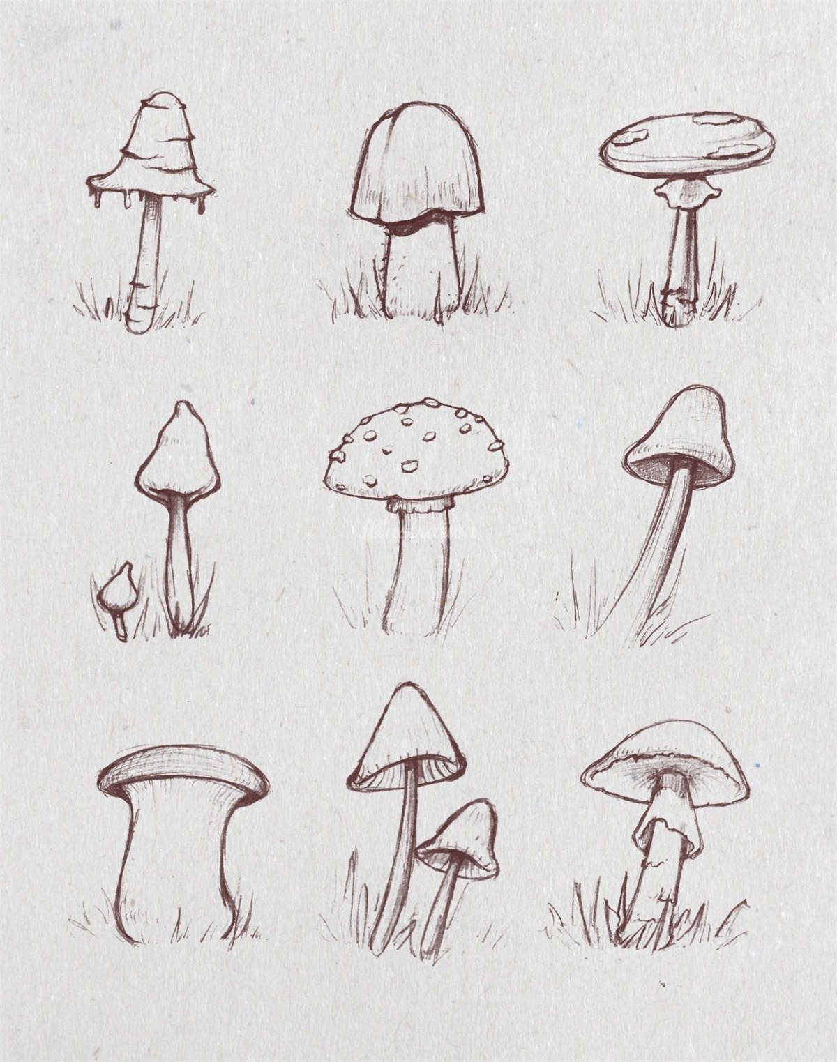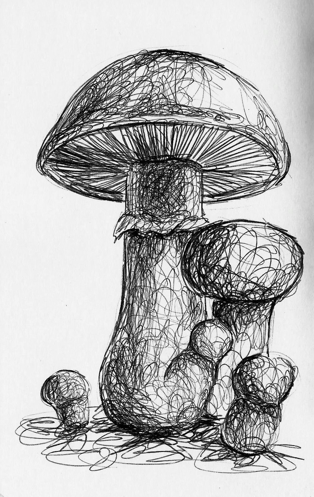 ![Зарисовки грибов карандашом]()