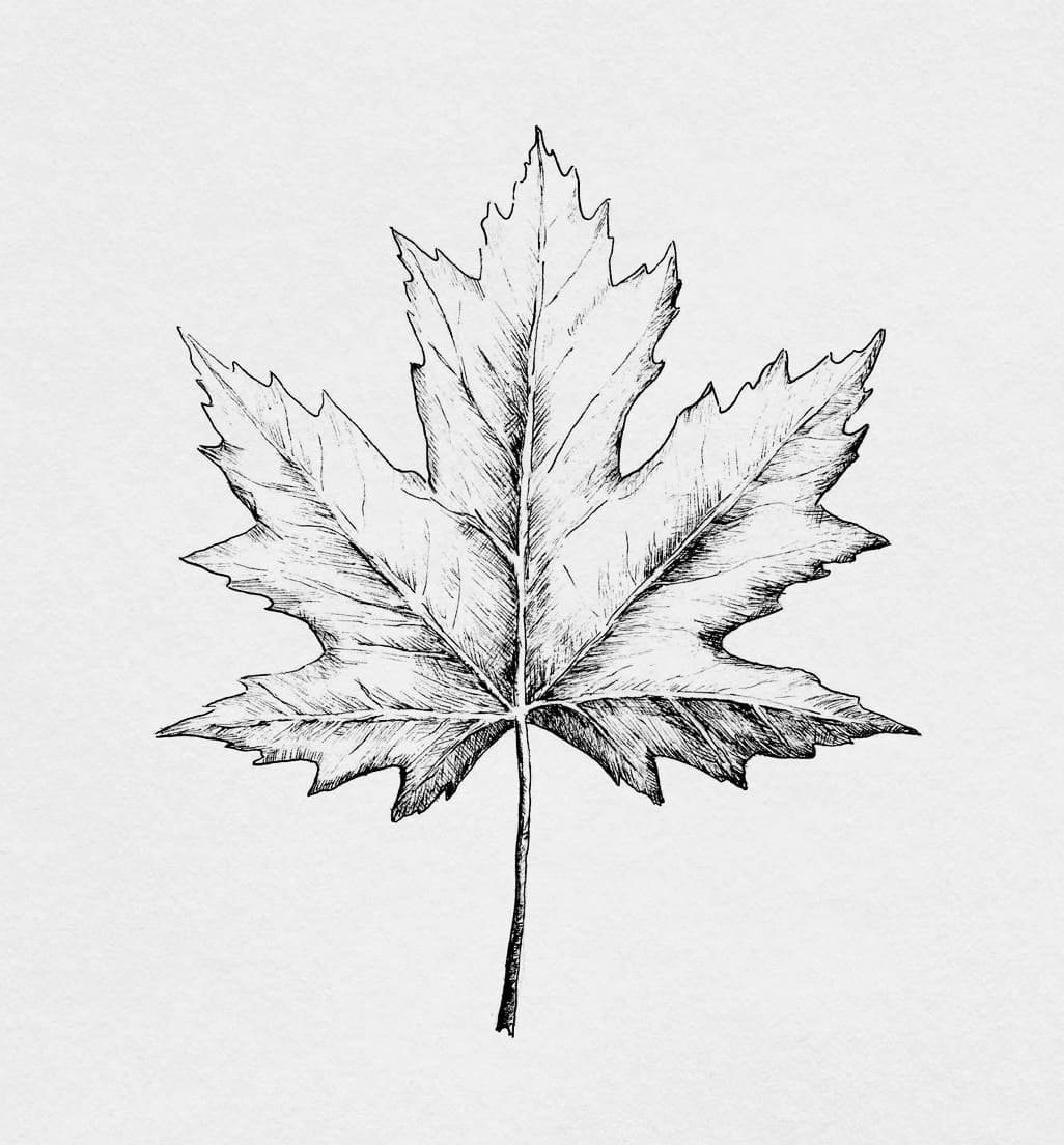 ![Кленовый лист карандашом]()
