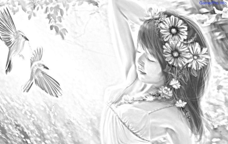 Девушка на природе карандашом