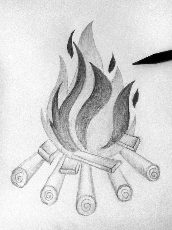Костёр рисунок карандашом