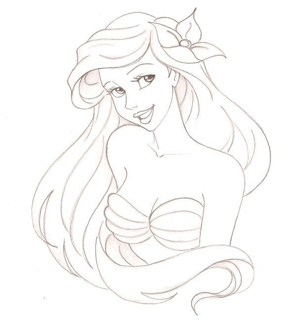 ![Ариель Дисней для срисовки]()