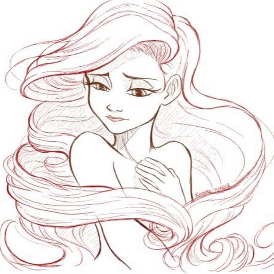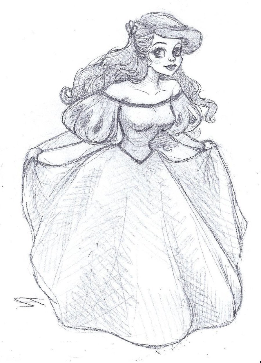 ![Скетч принцессы Дисней Ариэль]()