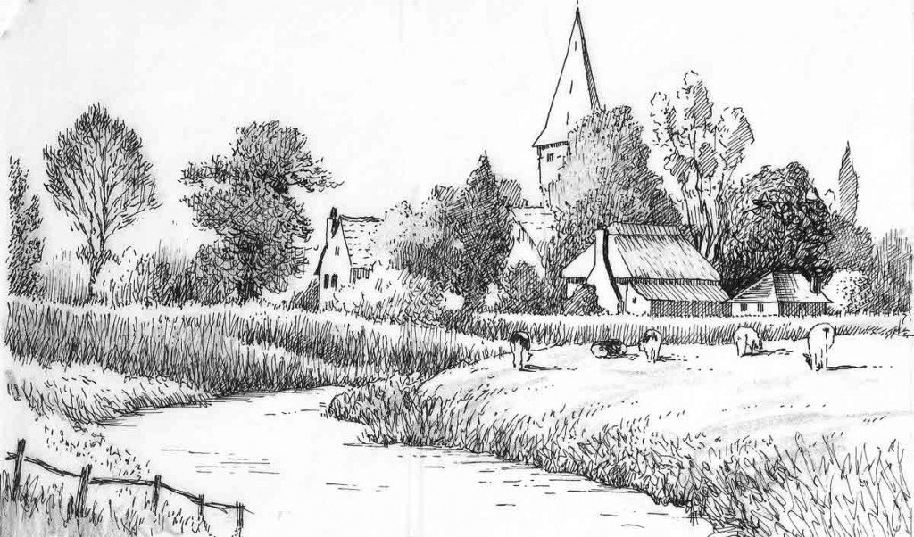 Деревенский пейзаж в графике