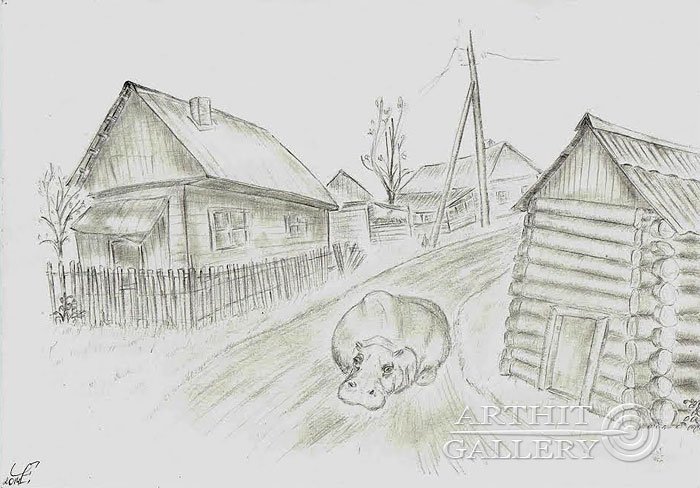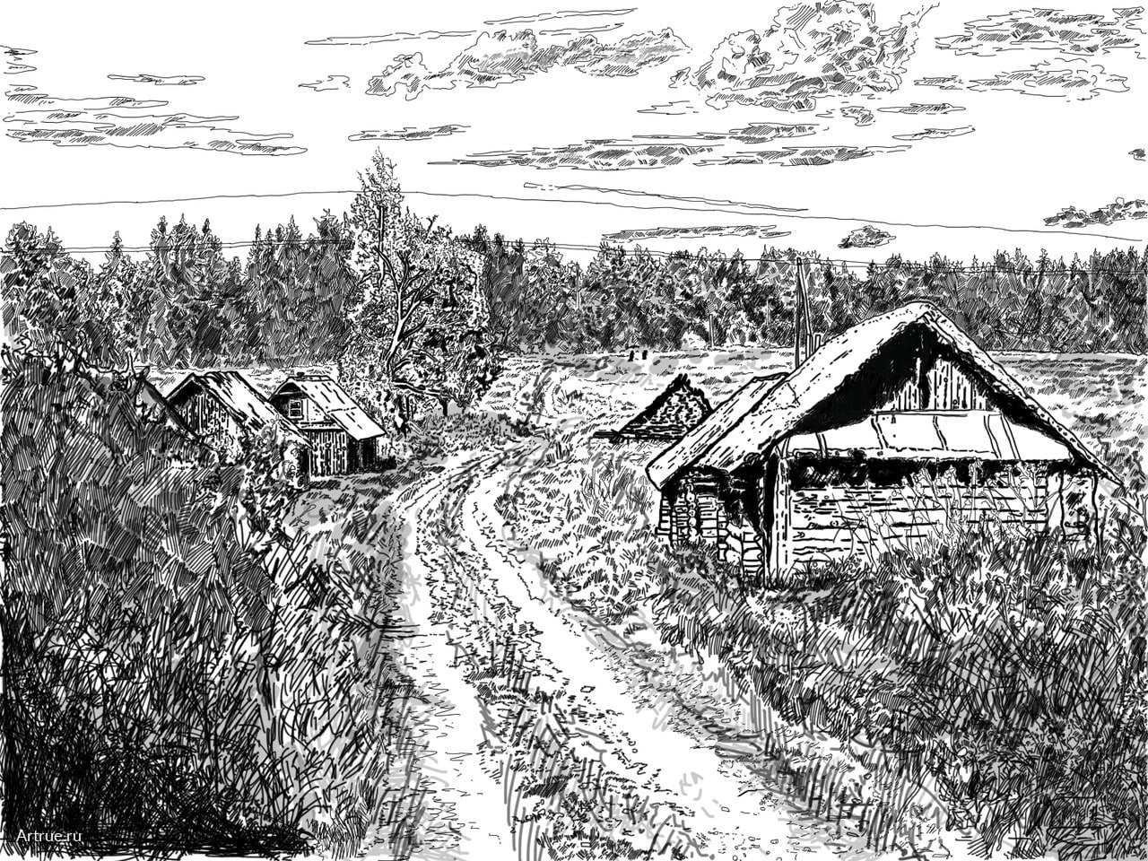 Деревня карандашом