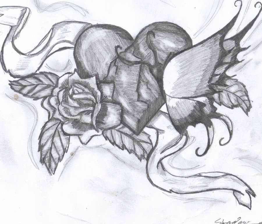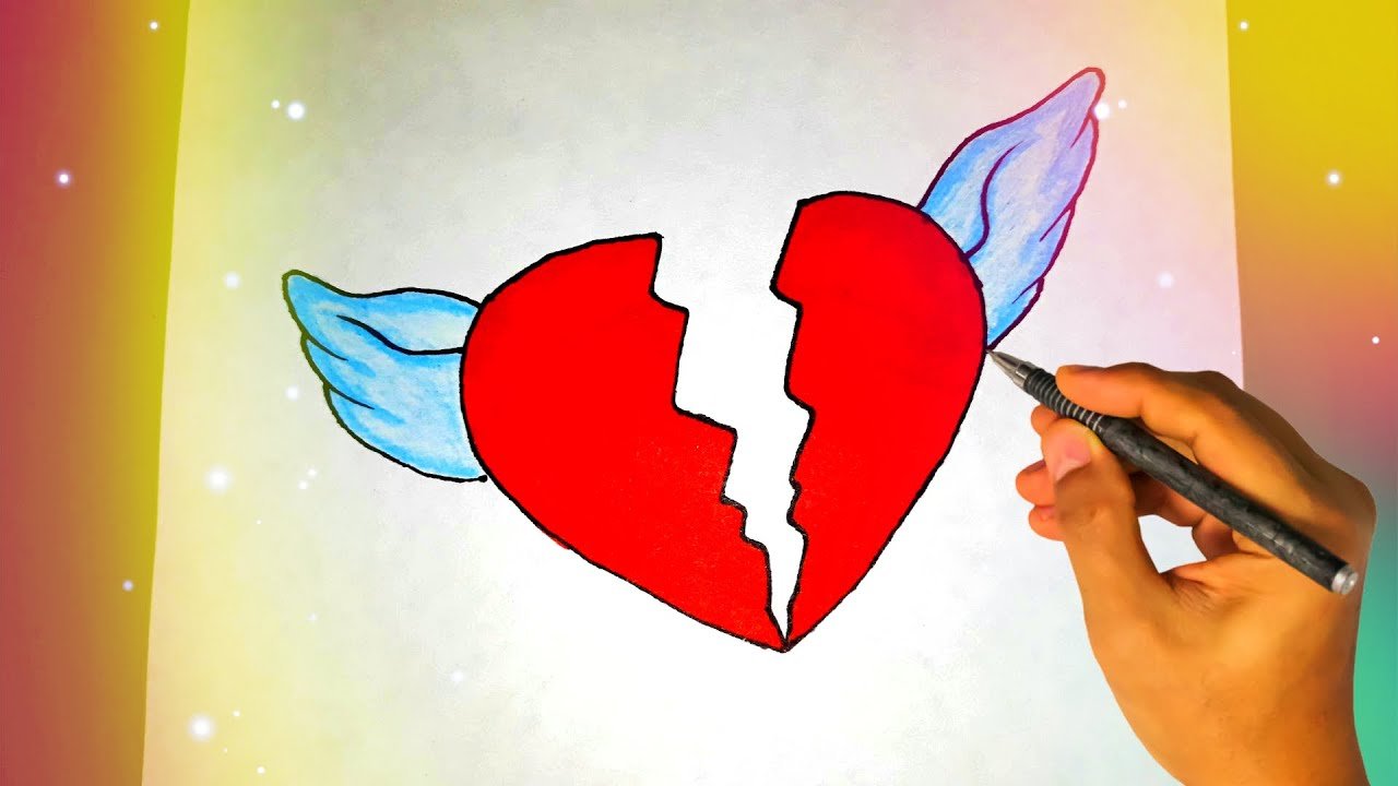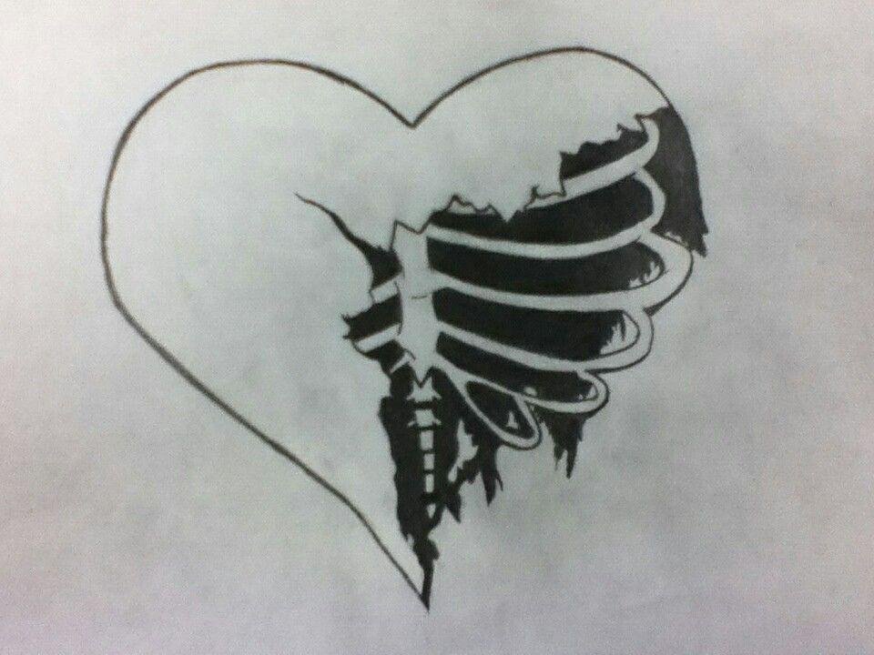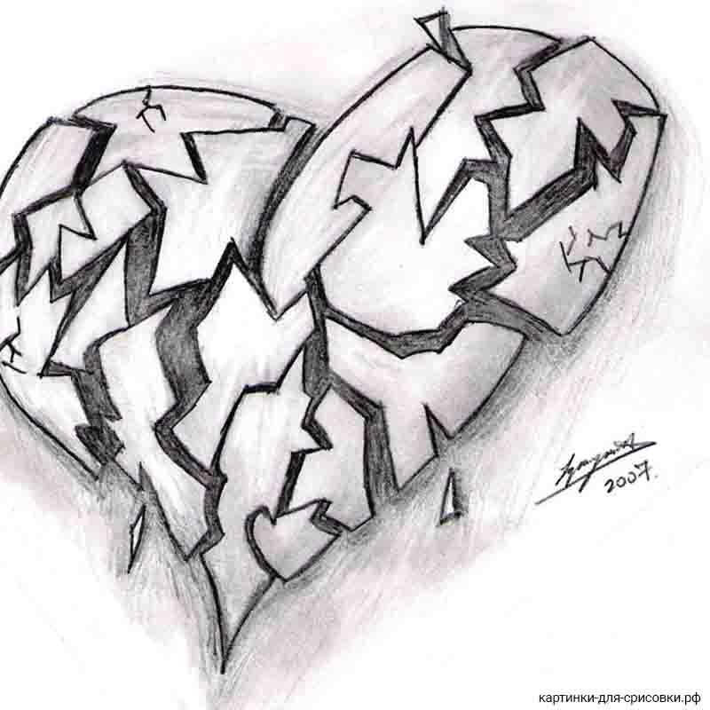 ![Разбитое сердце рисунок карандашом для срисовки]()