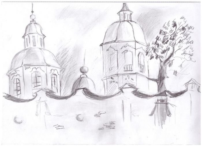 ![Зарисовки храма или общественного здания того или иного стиля]()