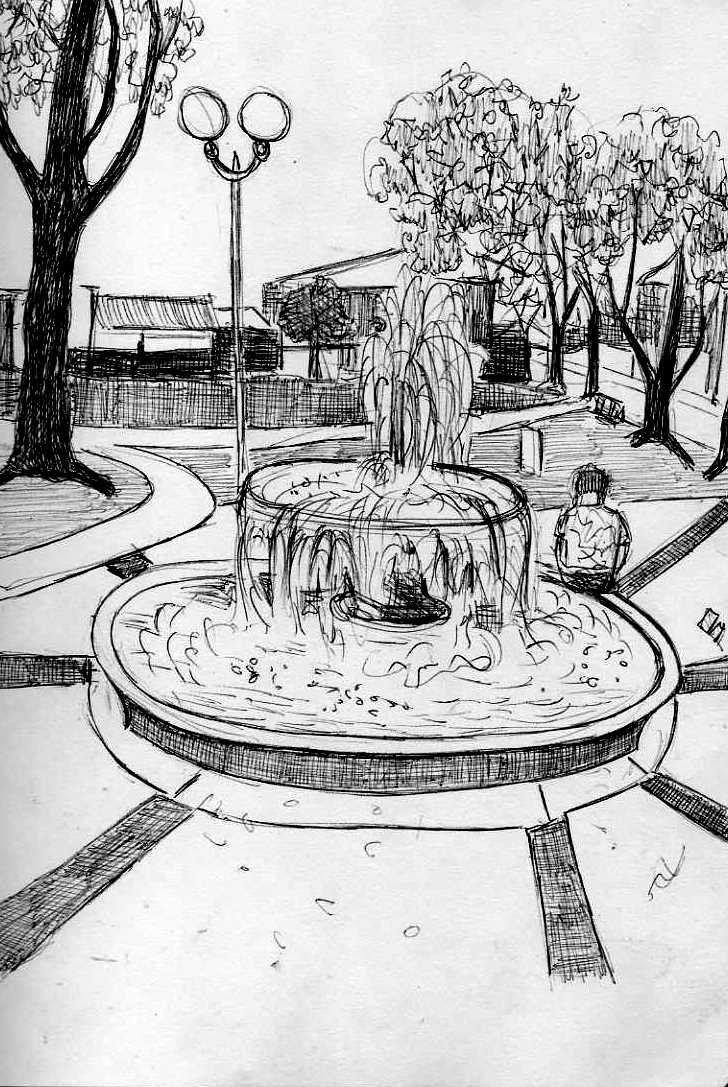 Фонтан карандашом