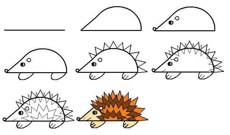 ![Нарисовать ежа поэтапно карандашом для детей]()