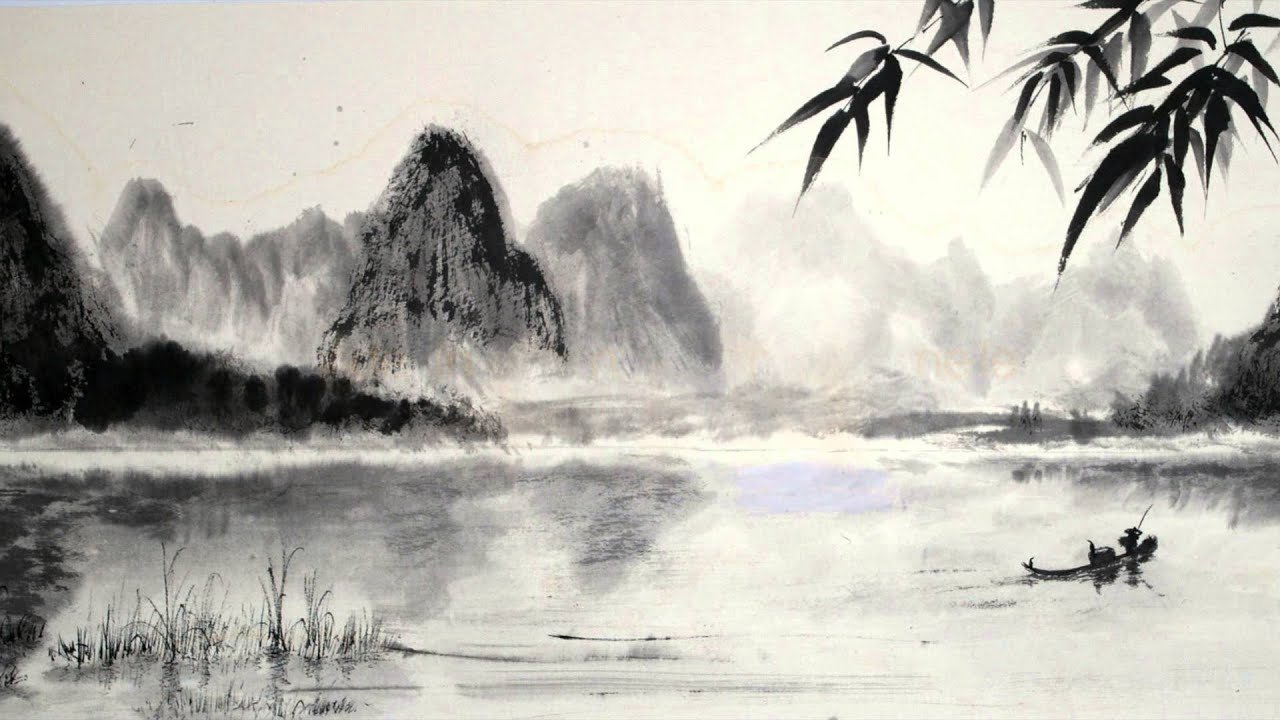 ![Японская живопись тушью в стиле суйбоку Рюкю Саито]()