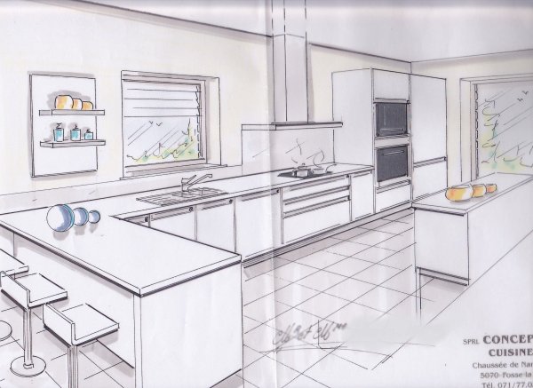 ![Кухня в эскизе набросок]()
