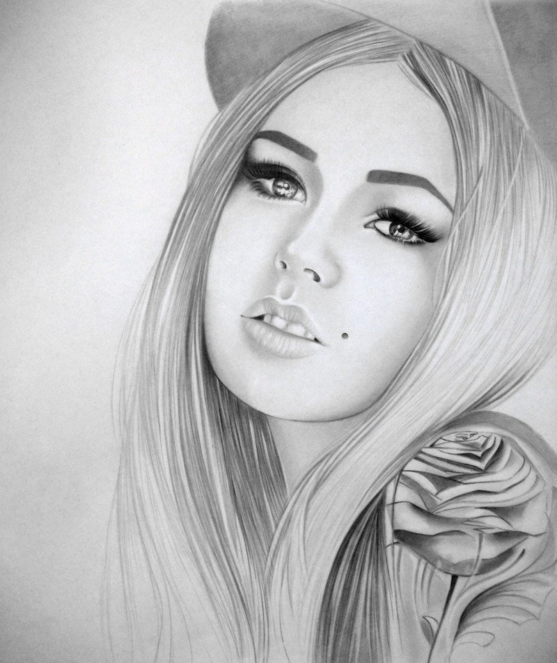 Черно белые рисунки девушек для срисовки