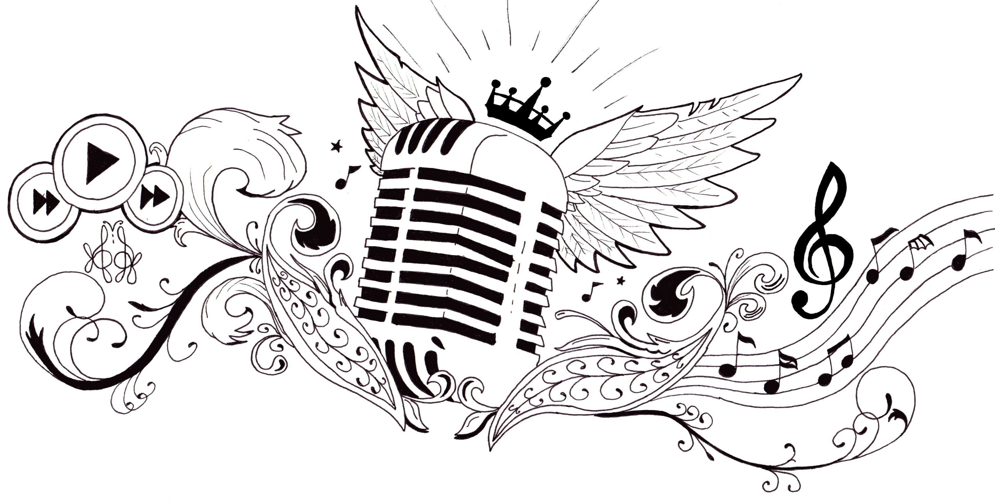![Нотный стан тату эскиз]()