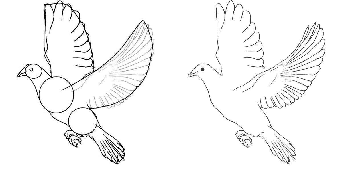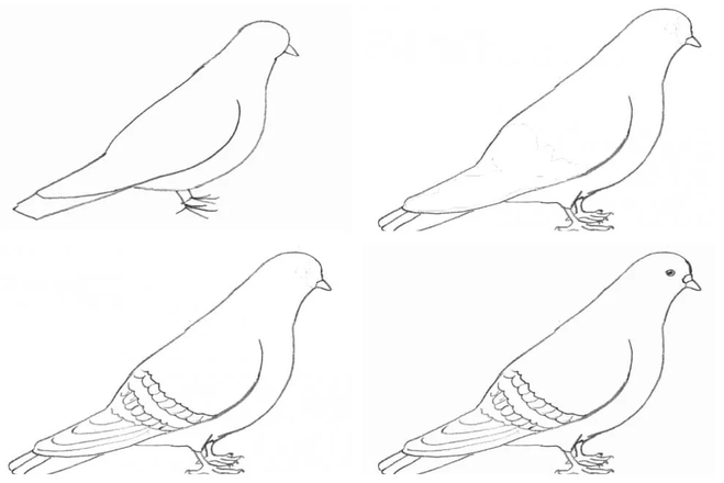Поэтапный рисунок голубя