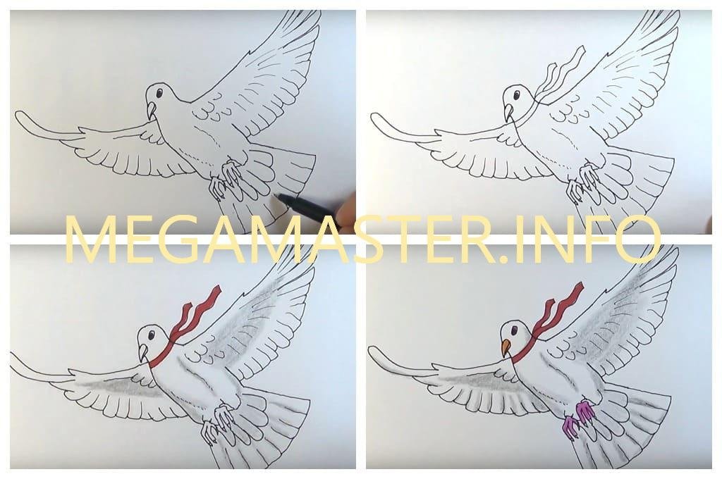 ![Поэтапный рисунок голубя]()