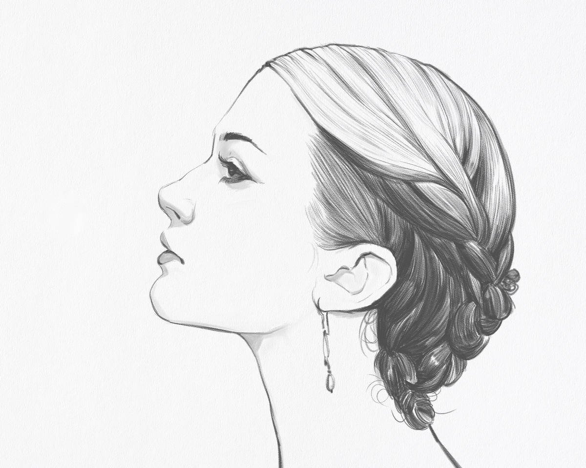 Профиль девушки карандашом