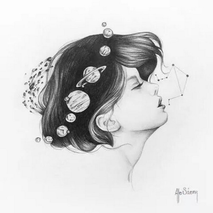 ![Профиль девушки карандашом]()