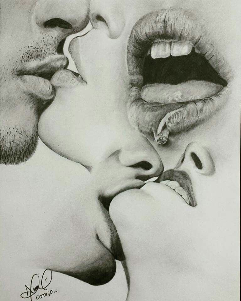 ![Поцелуй рисунок карандашом]()