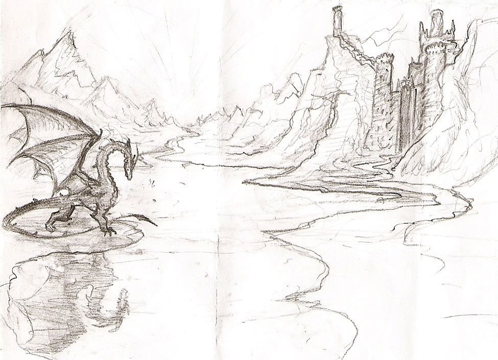 ![Фэнтези пейзаж карандашом]()