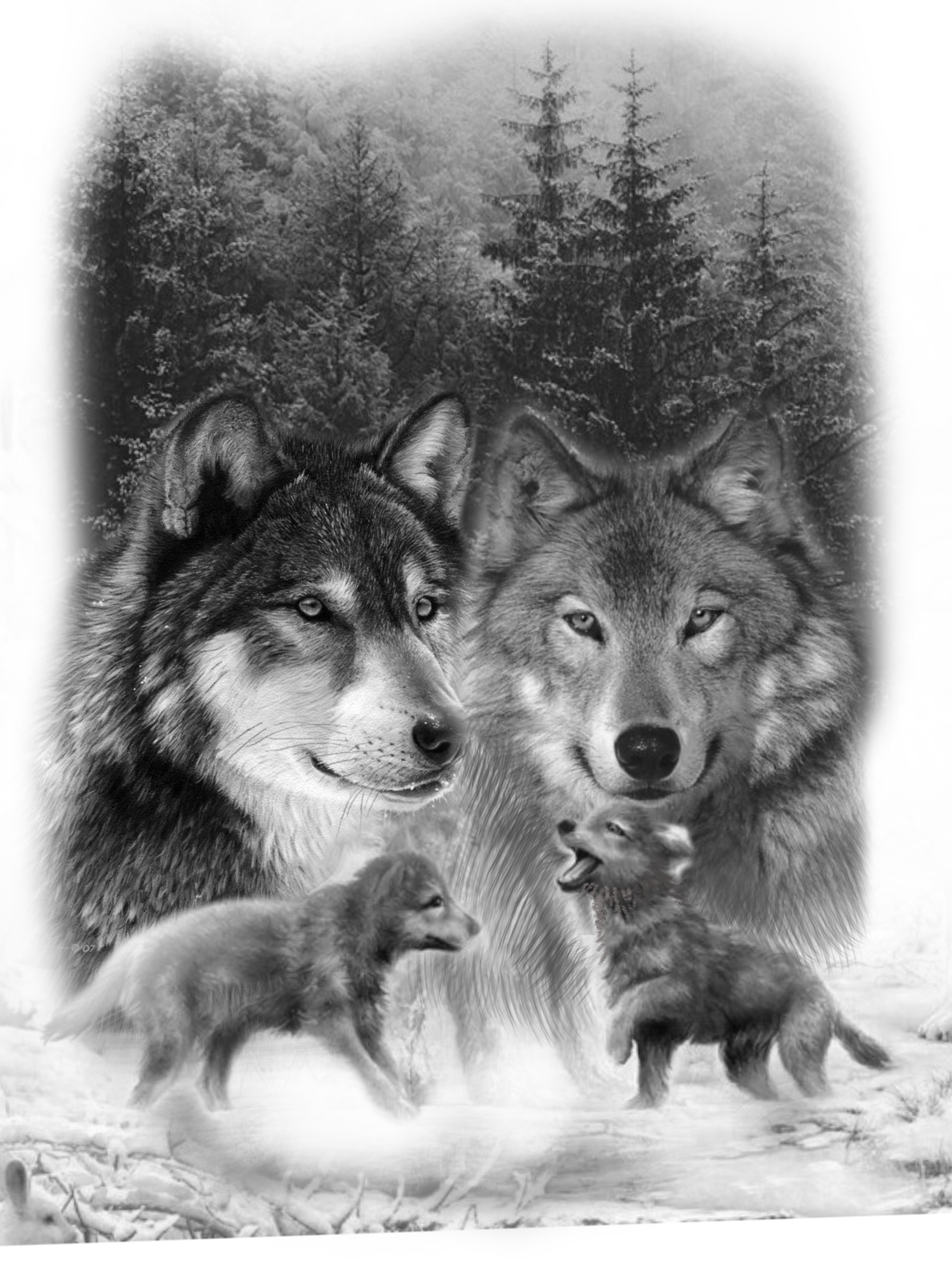 ![Волк волчица и 2 волчонка]()
