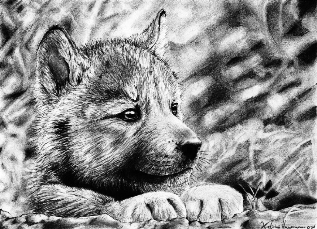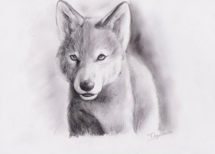 ![Волчонок карандашом профессионально]()