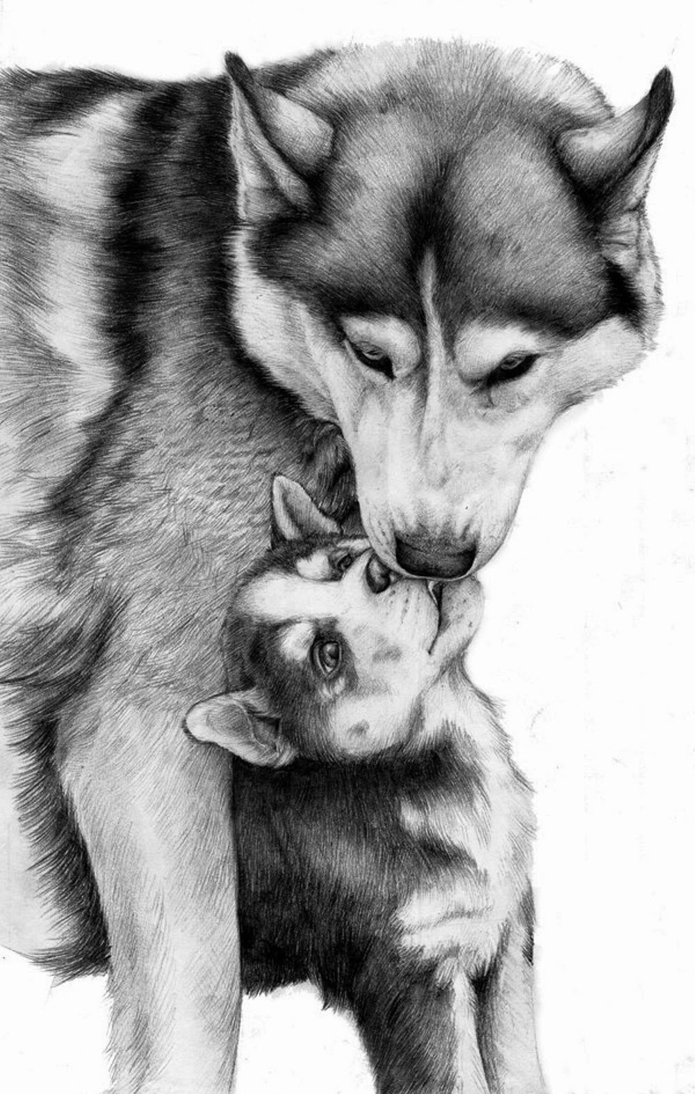 ![Волк и волчица карандашом]()