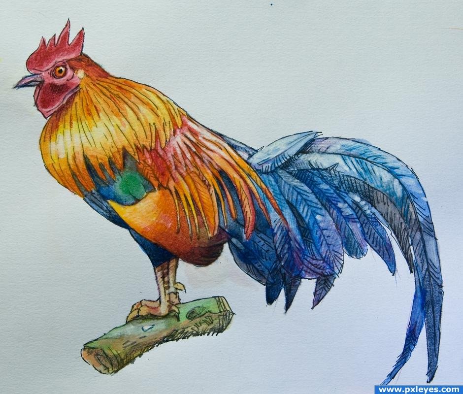 ![Петух цветными карандашами]()