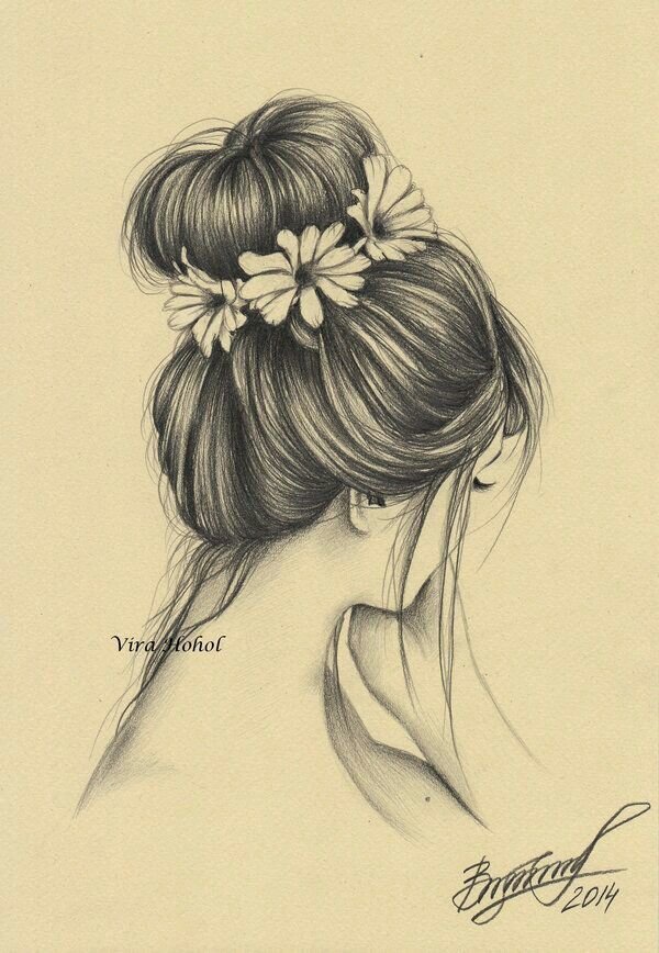 ![Девушка с гулькой рисунок]()