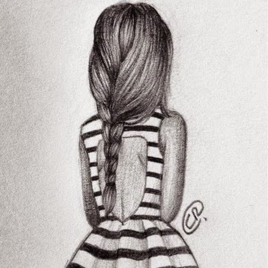 ![Рисунки карандашом девушки со спины]()