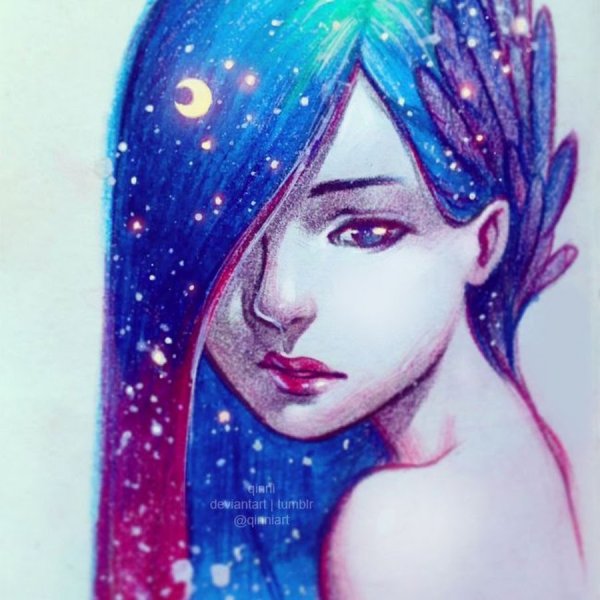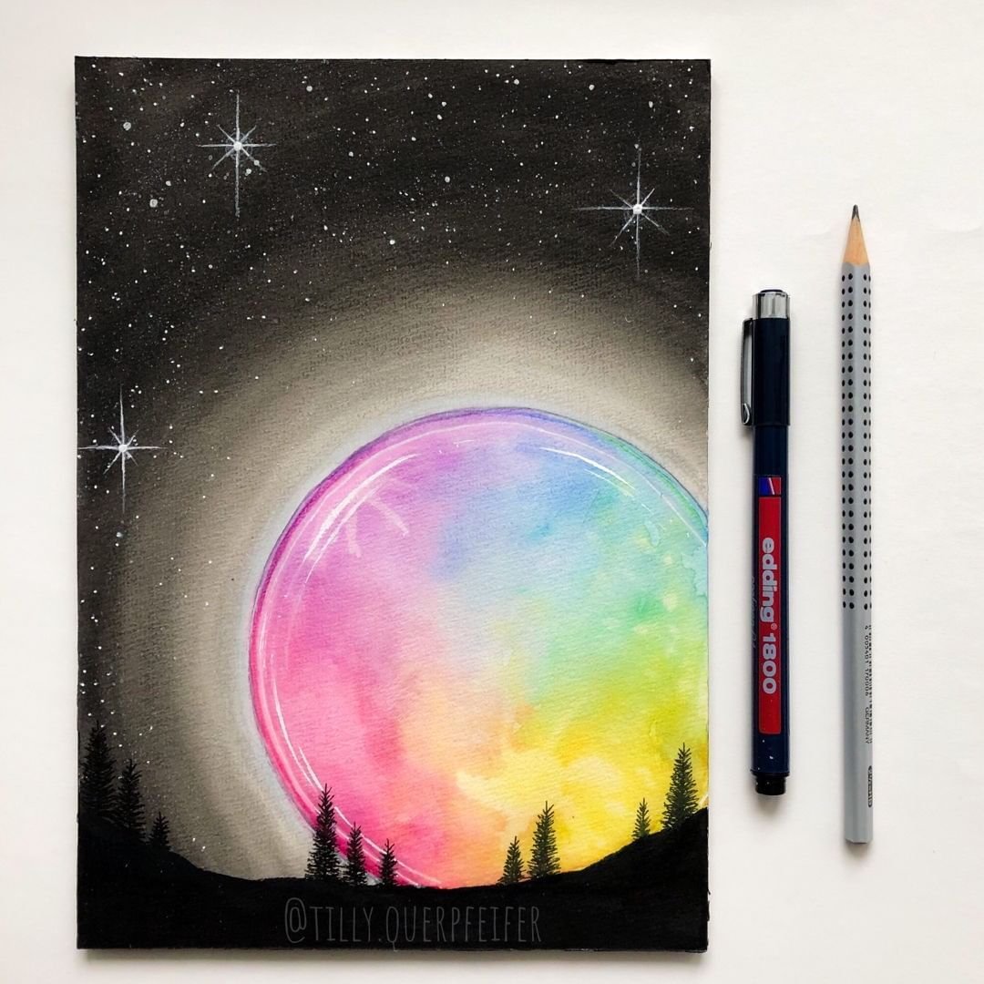 ![Космос акварельными карандашами]()