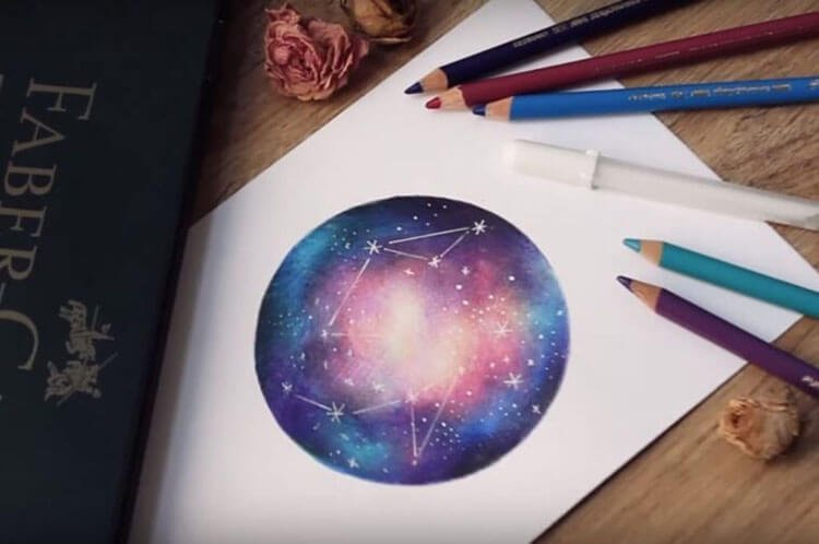 Космос акварельными карандашами