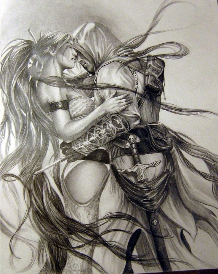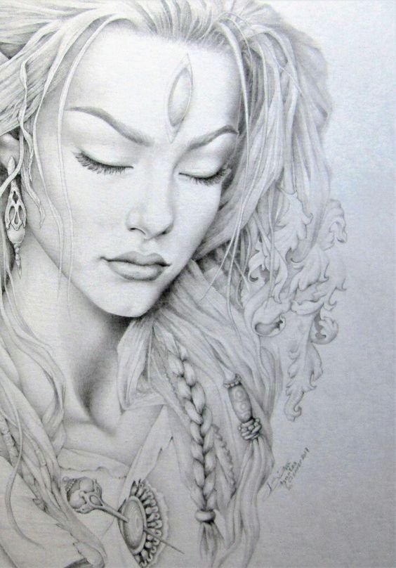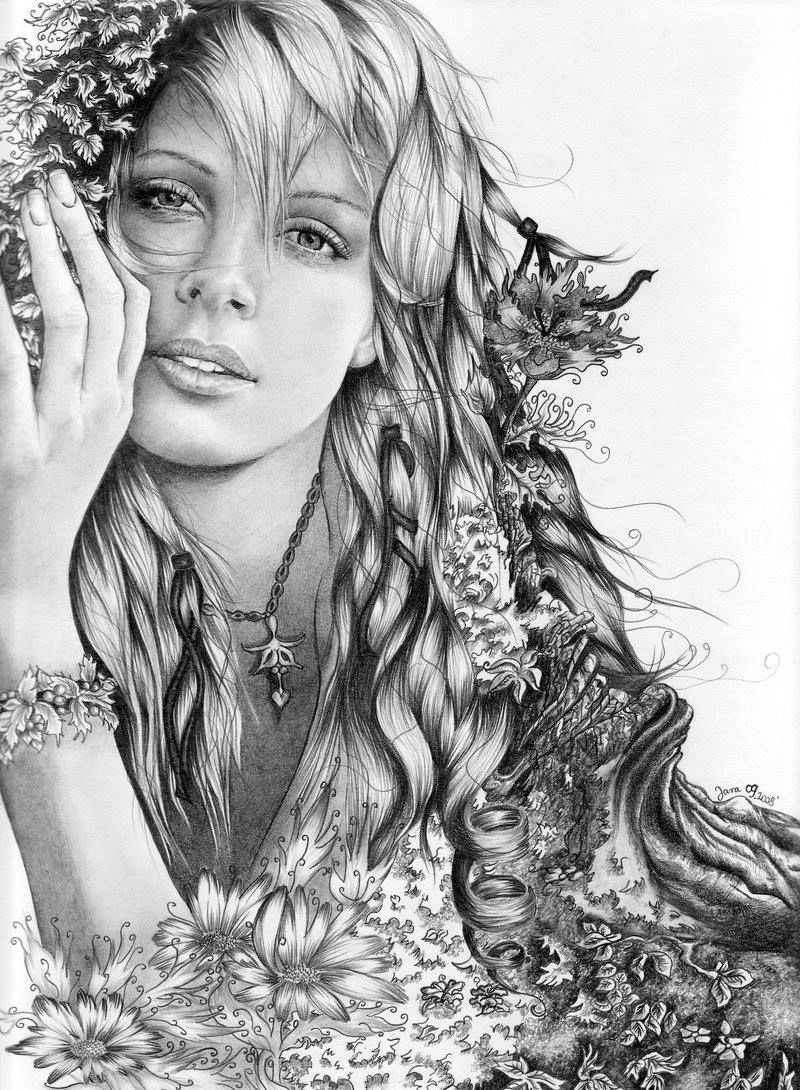 ![Девушки фэнтези карандашом]()