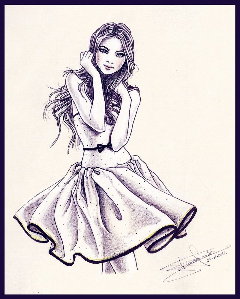 Погрузитесь в мир элегантности и изысканности с нашим рисунком карандашом "Девушка в красивом платье". Каждая линия, каждая тень и каждая деталь воссоздают уникальную атмосферу стиля и грации. Изображение передает нежность и красоту, приковывая внимание зрителя своей простотой и одновременно величественностью. Будьте вдохновлены этим произведением и создайте свою собственную историю о чарующей девушке в этом прекрасном платье.