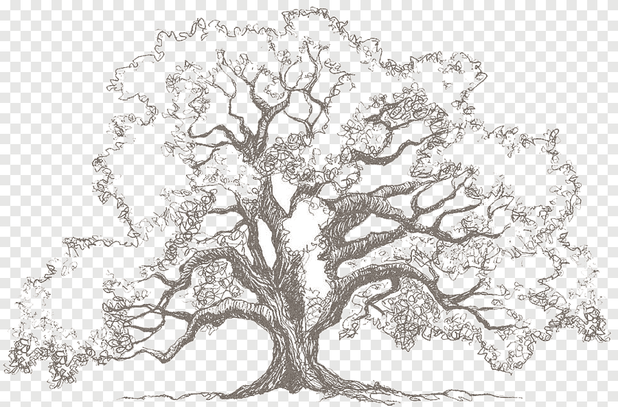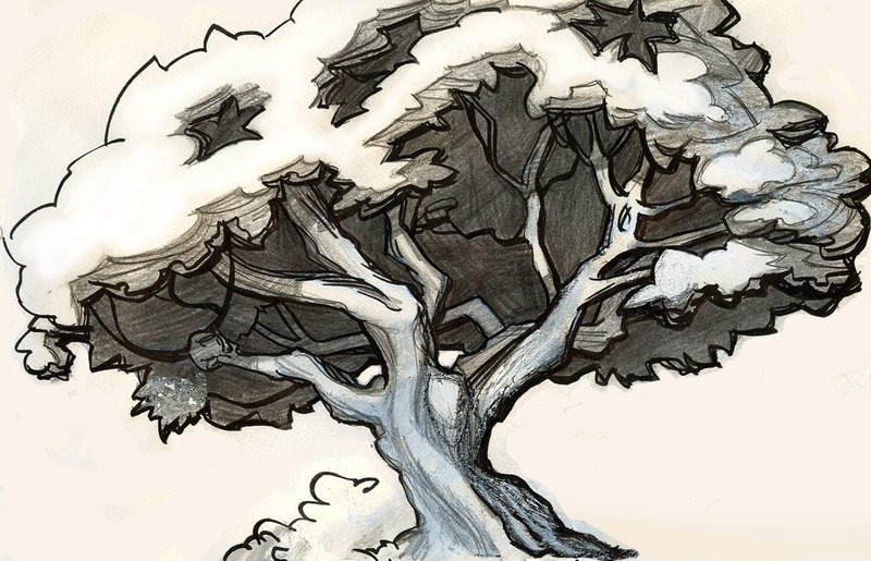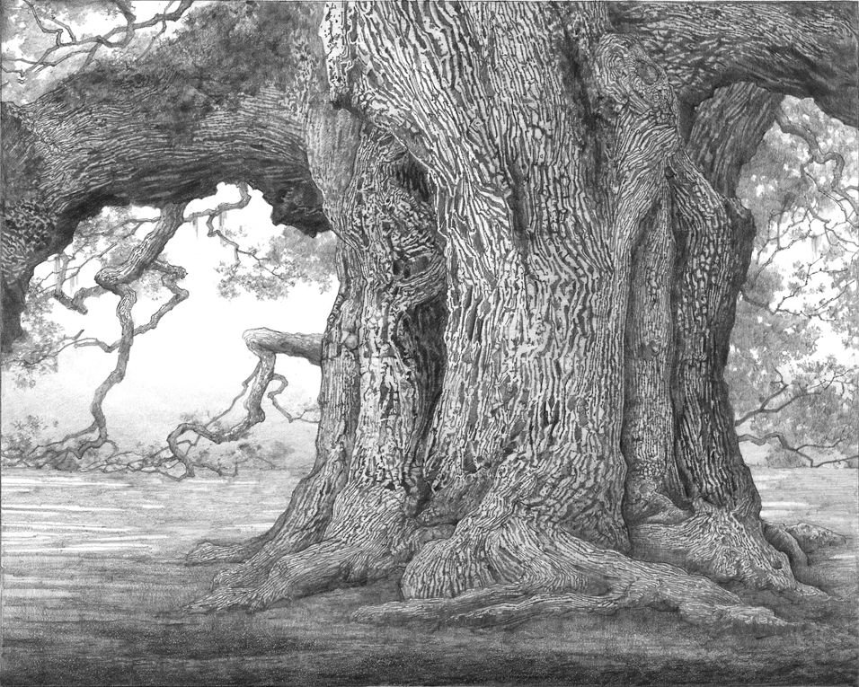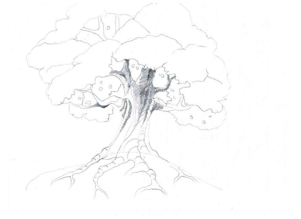 Большое дерево карандашом