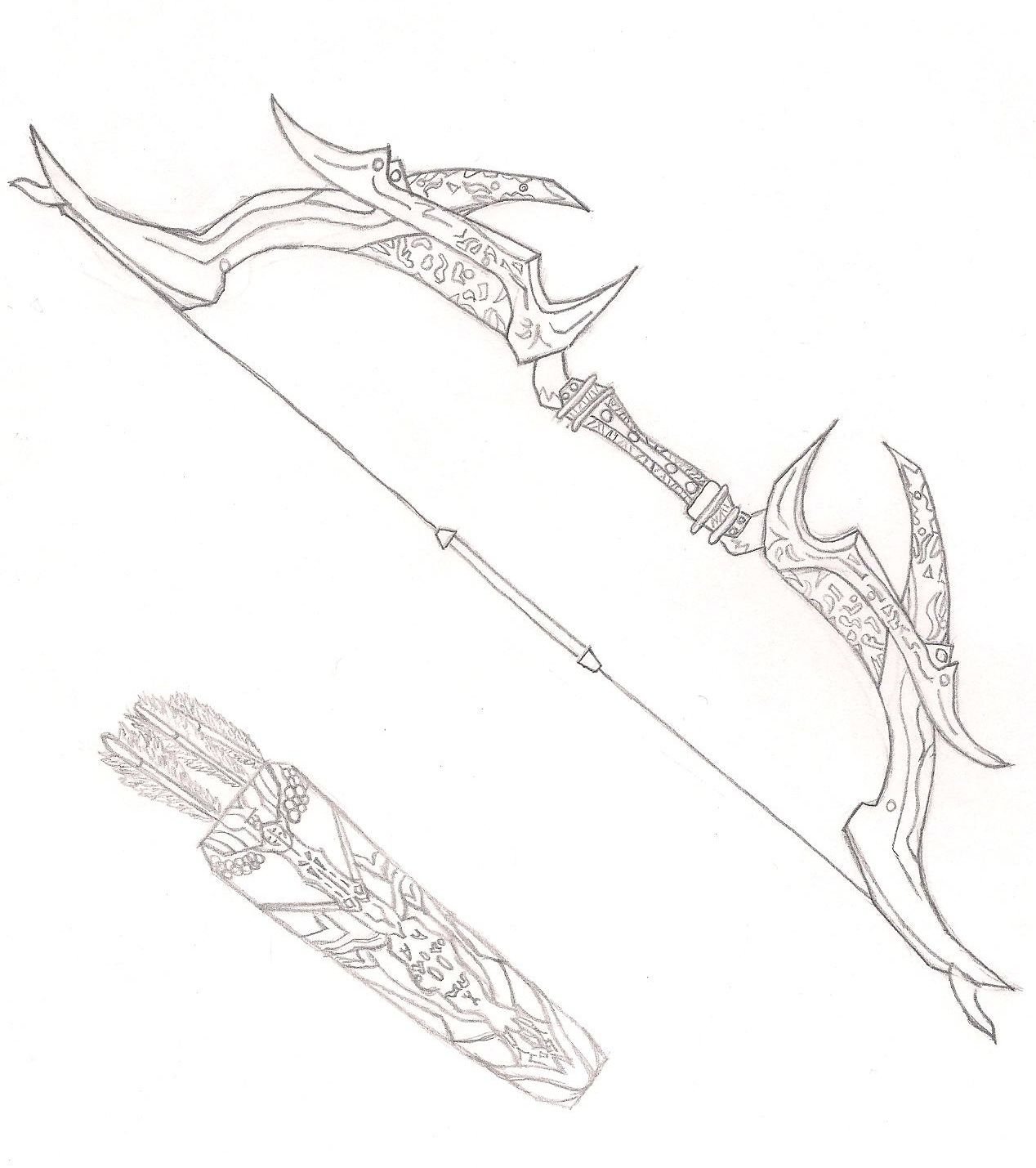 ![Лук и стрелы эскиз]()