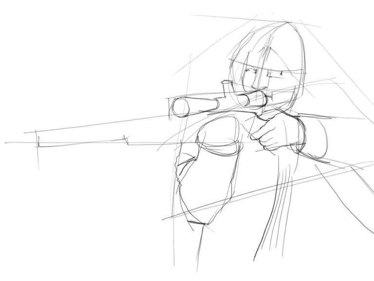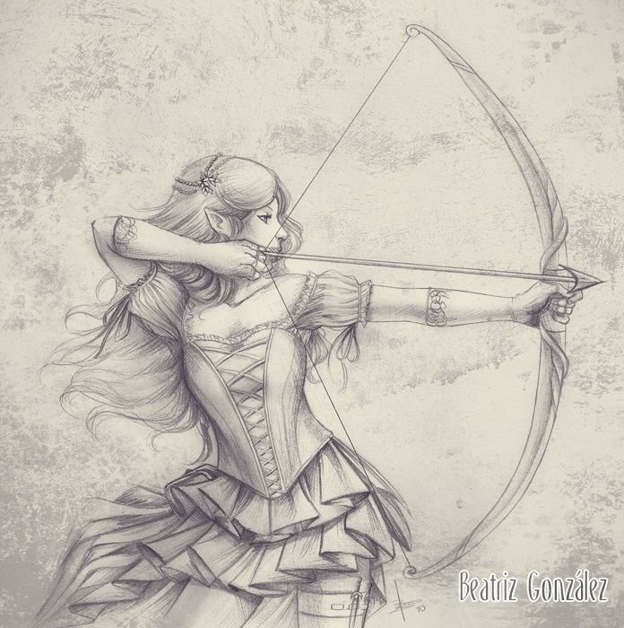 ![Девушка с луком эскиз]()