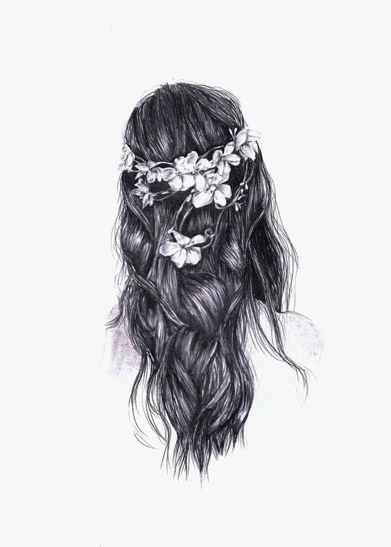 ![Девушка с цветами в волосах рисунок]()