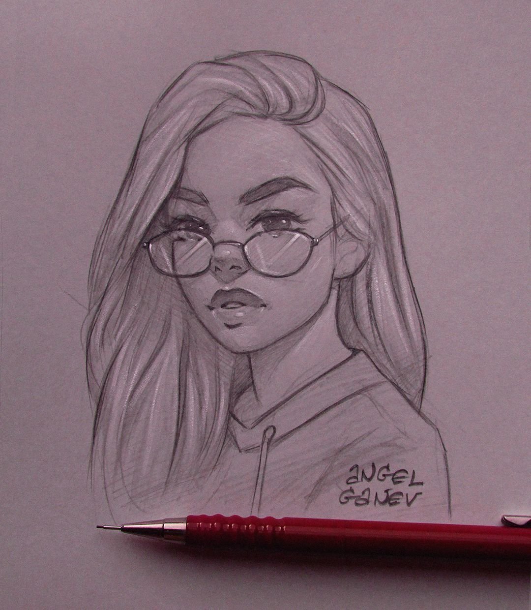 ![Девушка в очках рисунок карандашом]()
