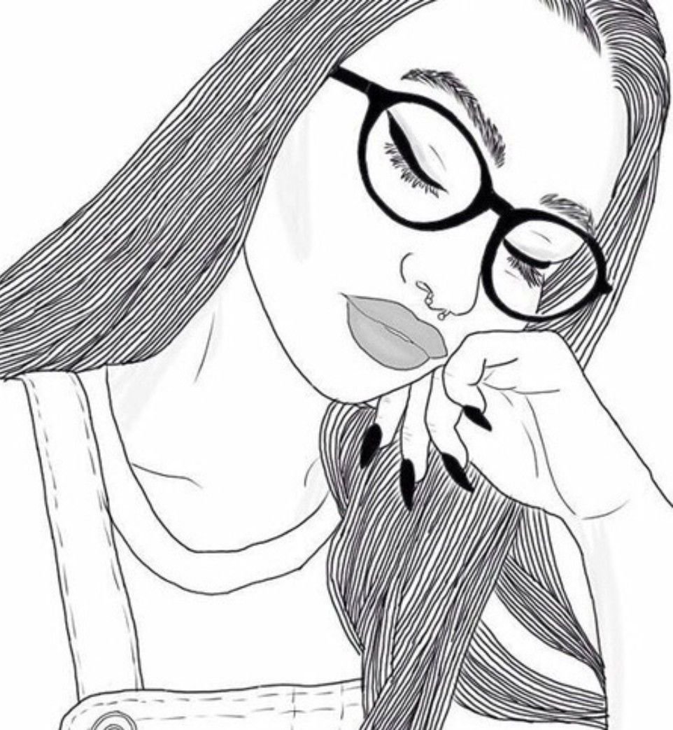 ![Рисунки для срисовки девушки в очках]()