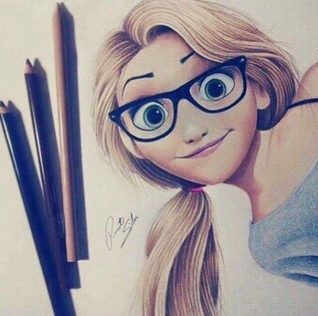 ![Девушка в очках карандашом]()