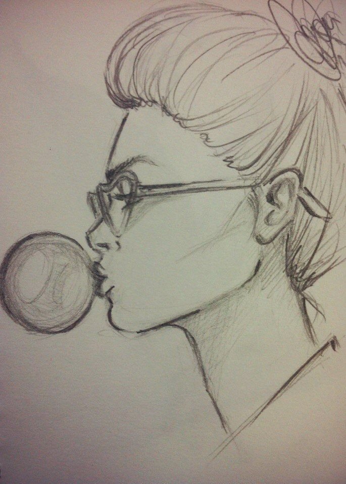 ![Скетч девочка в очках]()