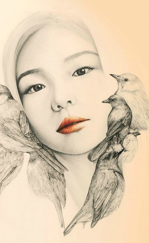 Рисунки кореянок карандашом