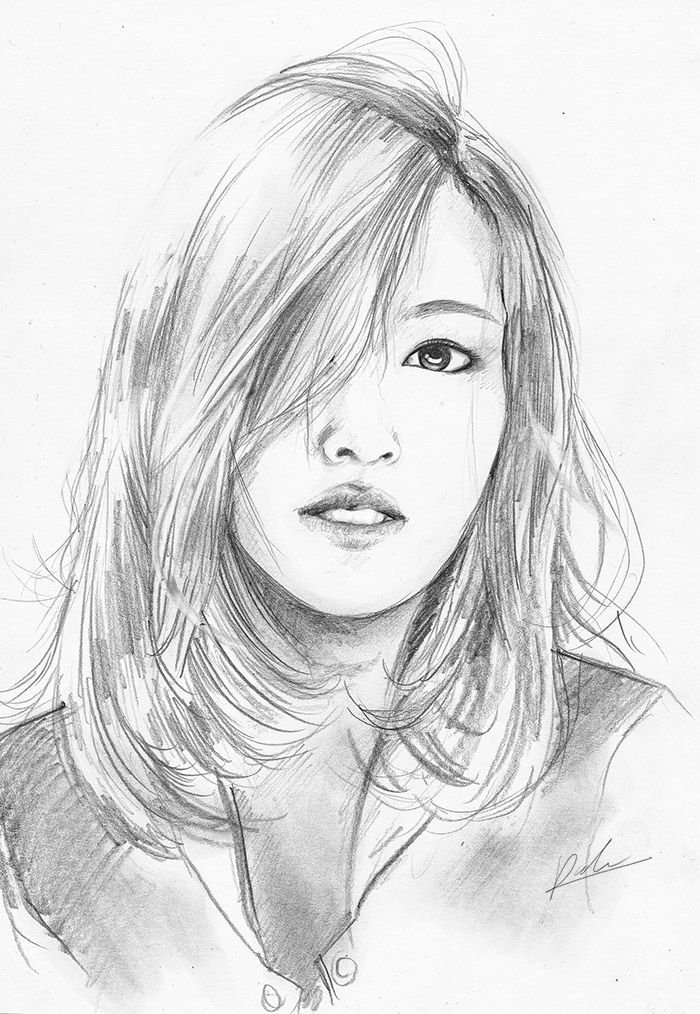 ![Портрет кореянки карандашом]()