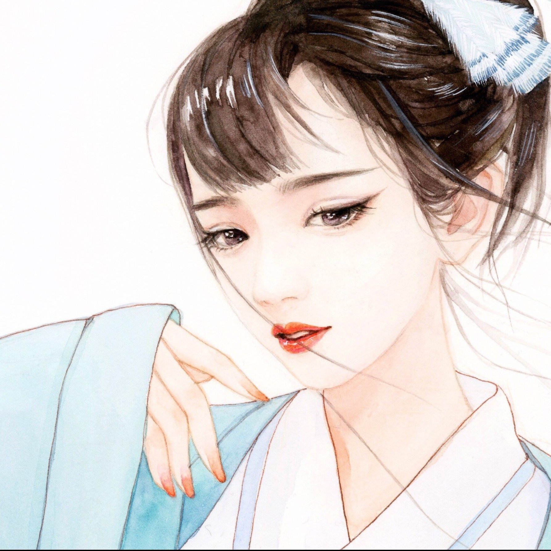 ![Рисунки кореянок карандашом]()