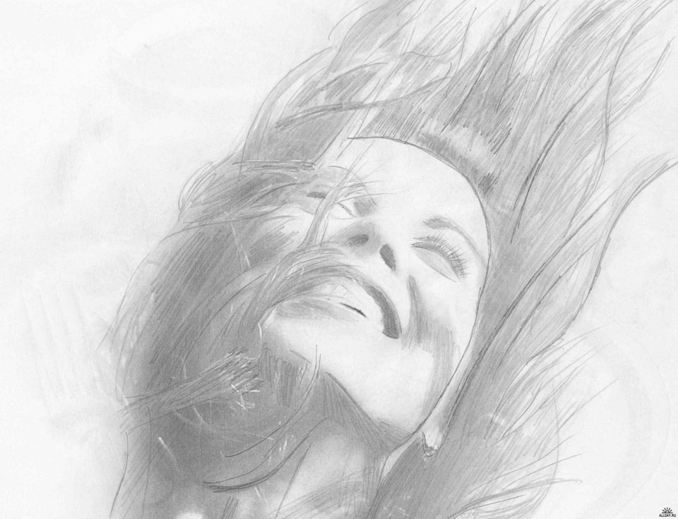 ![Девушка улыбается рисунок карандашом]()