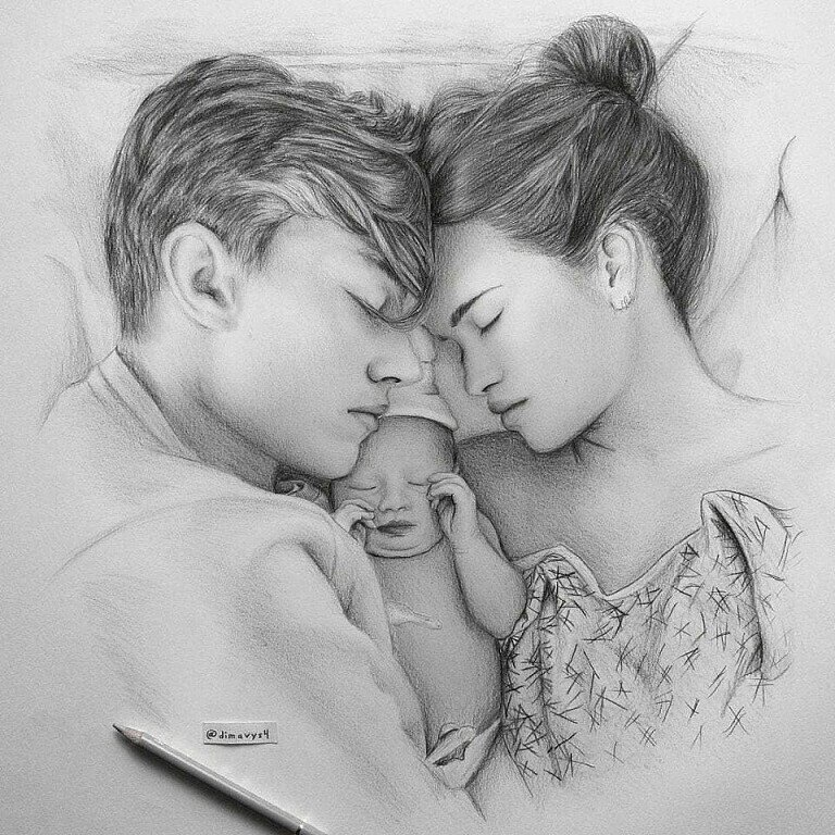 ![Семья рисунок карандашом]()