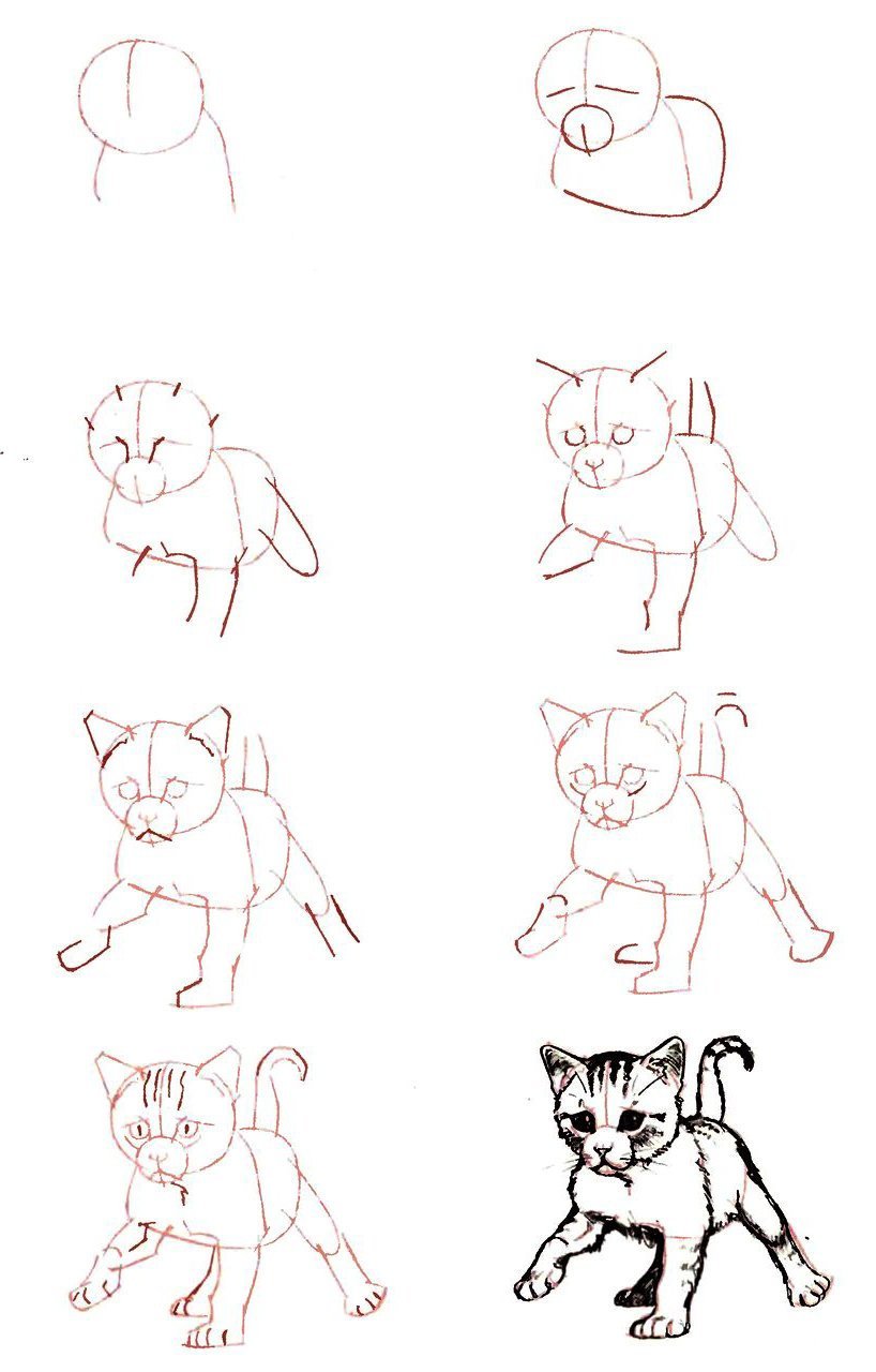 Поэтапное рисование котенка