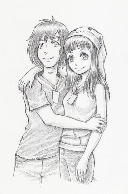 ![Парень и девушка рисунок карандашом для срисовки]()