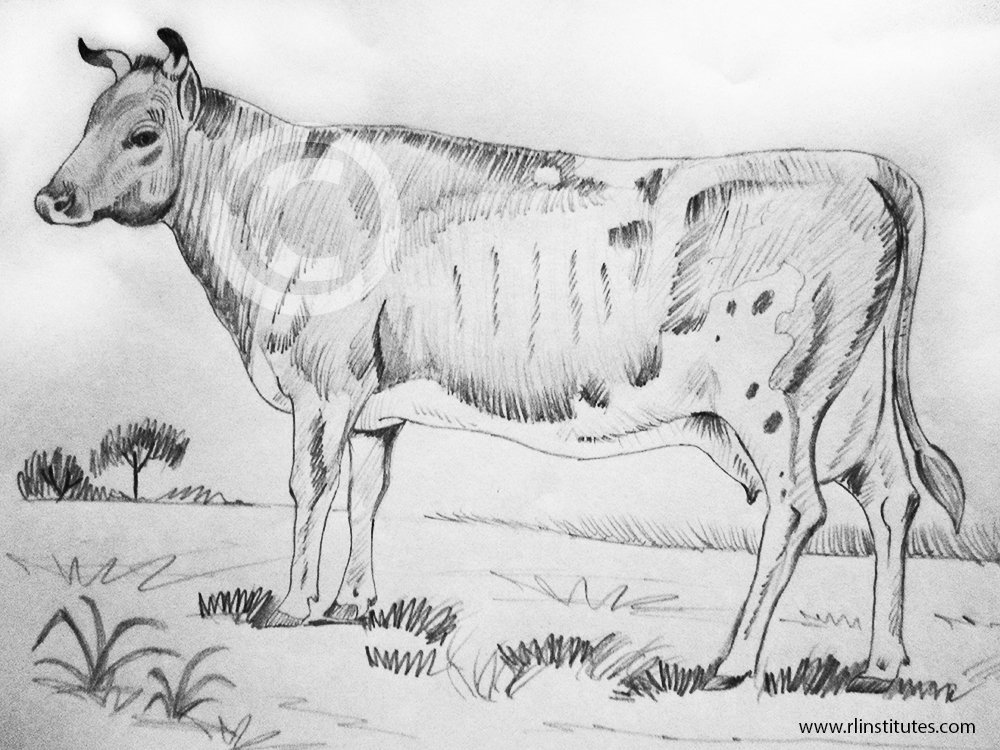 ![Рисунок коровы карандашом боком]()