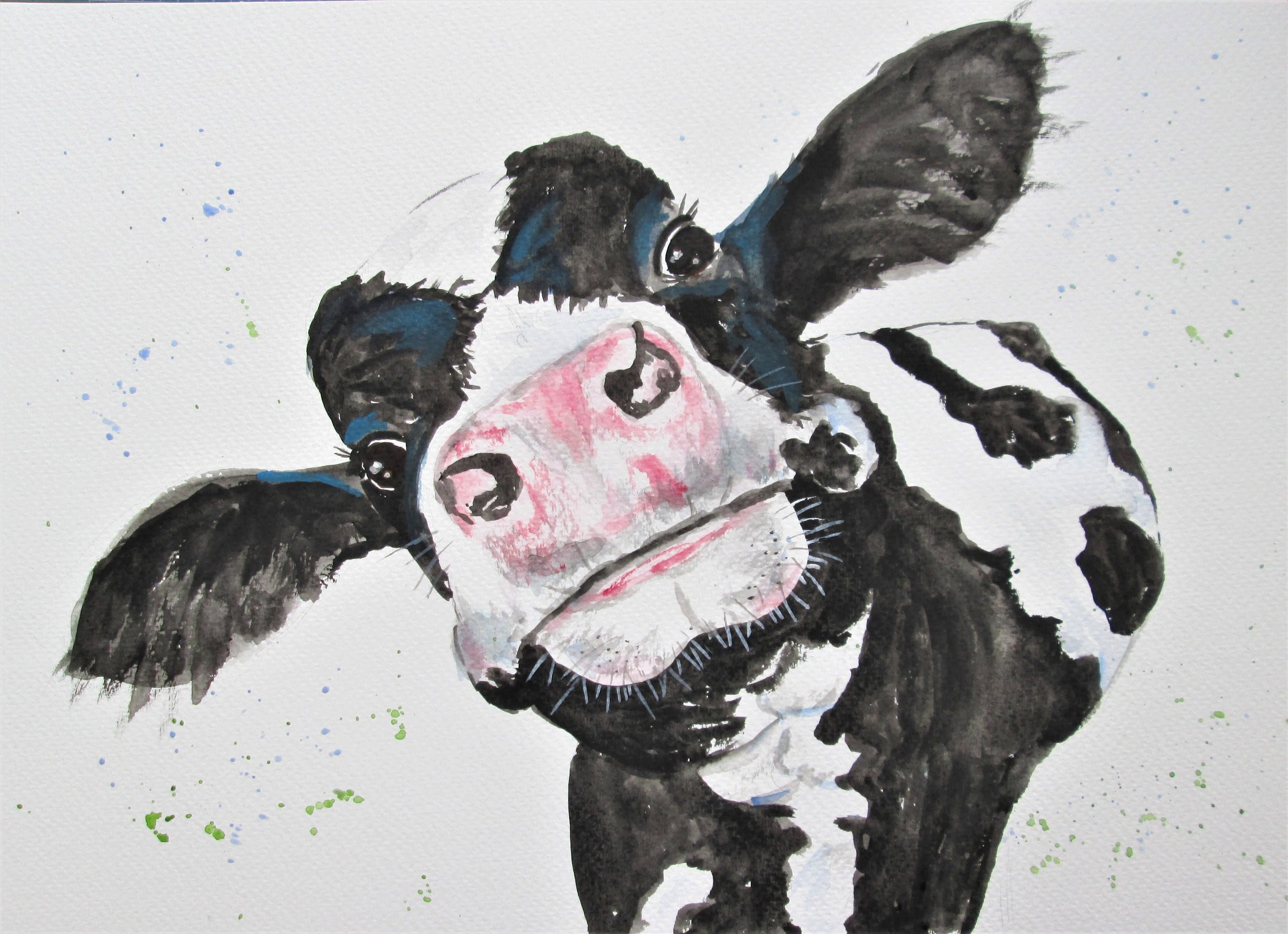 ![Теленок акварель]()