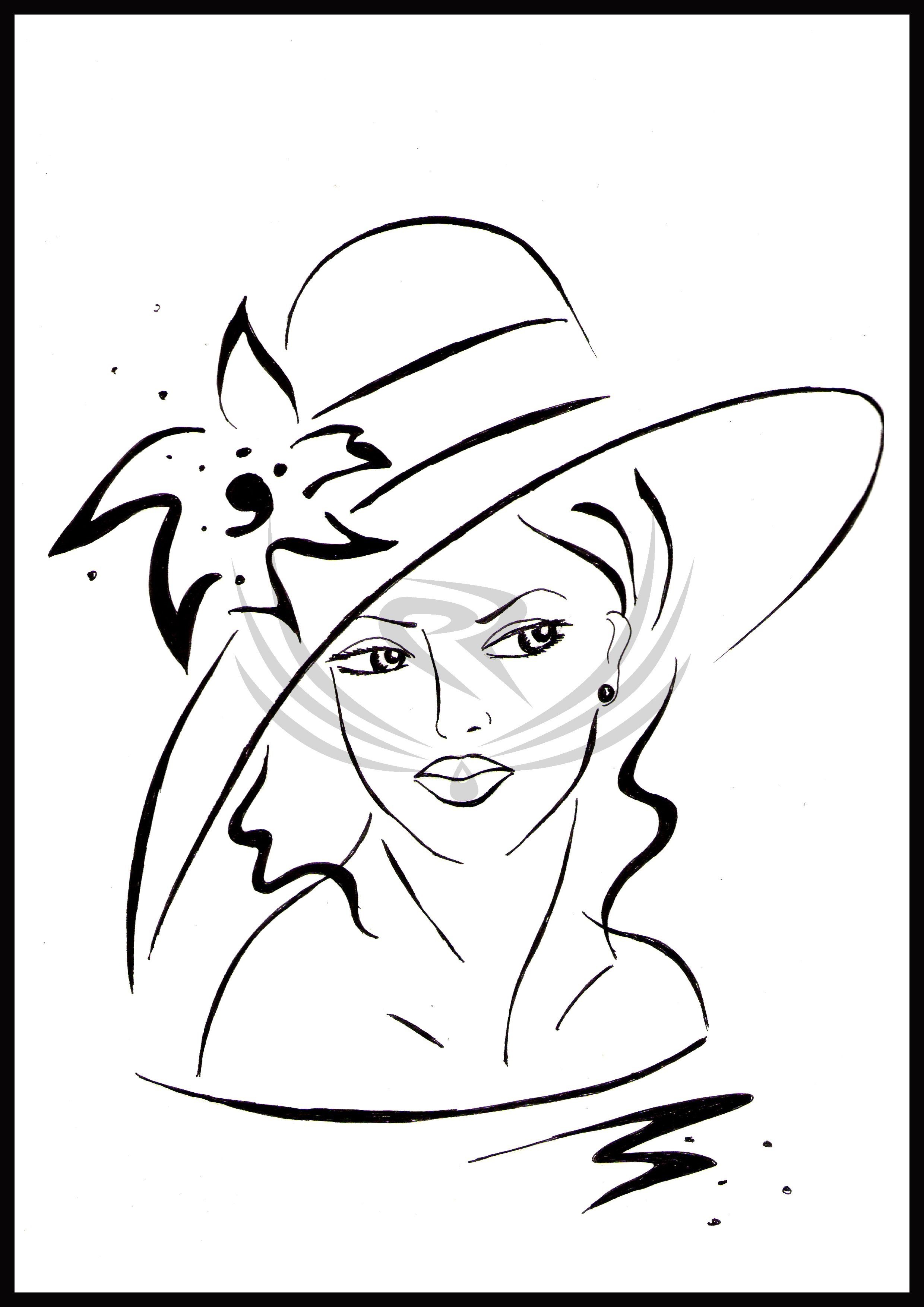 ![Девушка в шляпе рисунок]()